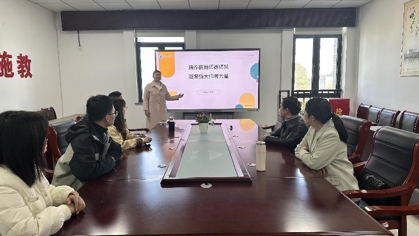 4月2日下午,bat365正版唯一官网毛泽东思想和中国特色社会主义理论体系概论教研室党支部在逸夫综合楼5508举办师德师风专题微党课和主题党日活动。党课由党支部宣传委员宛洁担任主讲人,全体党员参加。