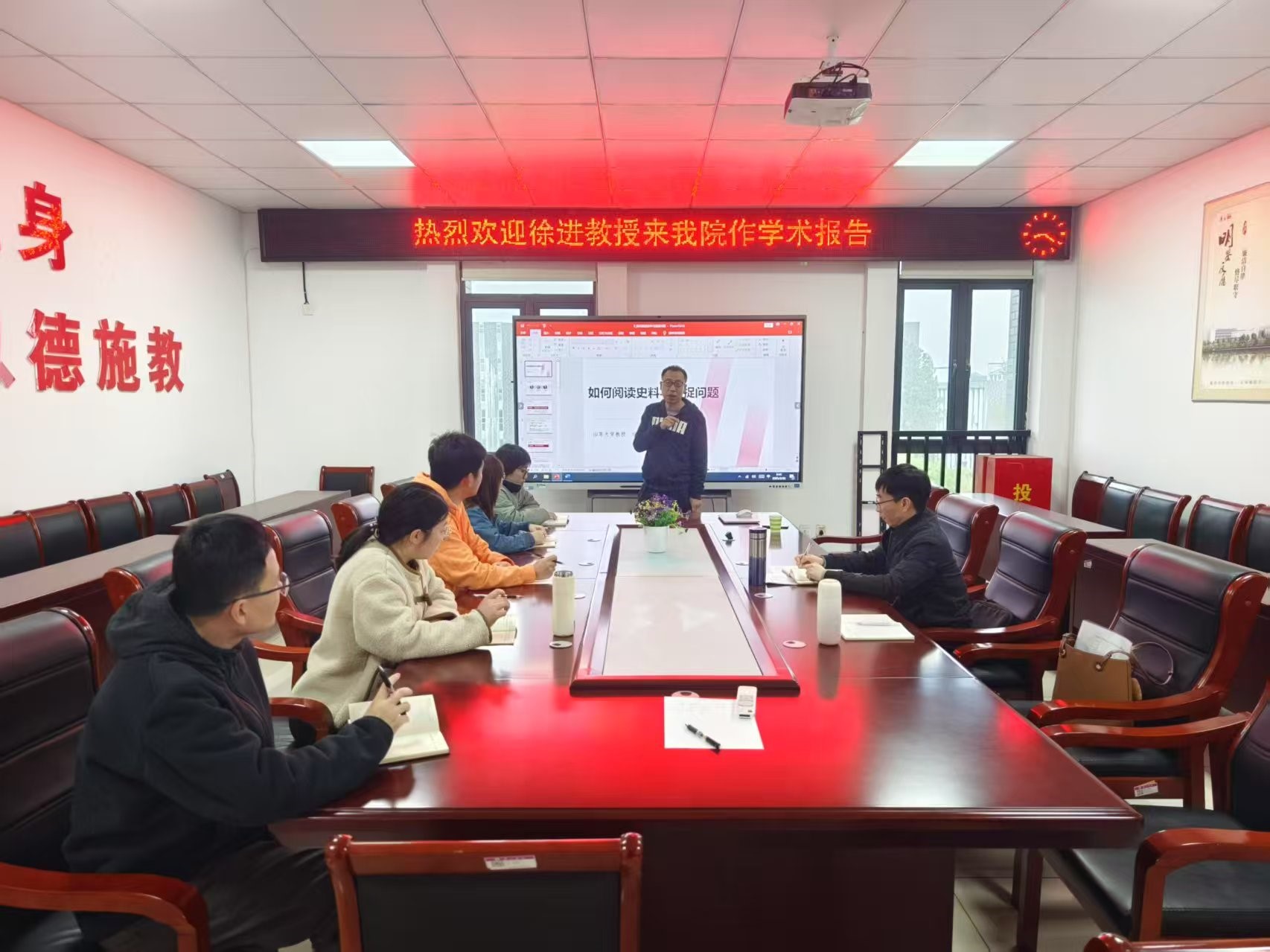 3月28日上午,山东大学历史学院教授、博士生导师徐进应邀在bat365正版唯一官网以“史料阅读与问题意识”为题,开展了一场学术讲座。讲座由中国近现代史纲要教研室党支部书记吴云峰主持。