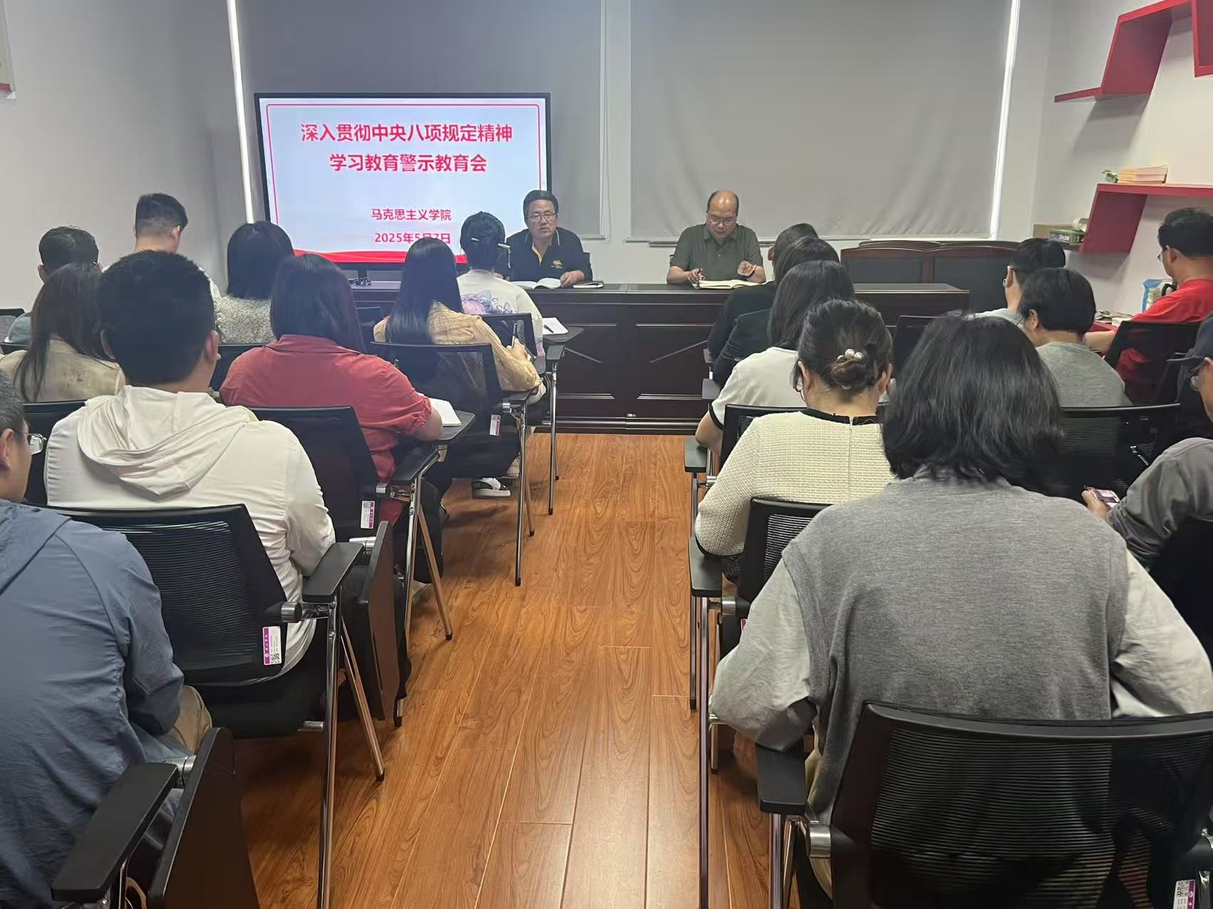 5月7日下午,bat365正版唯一官网在逸夫综合楼5513会议室召开深入贯彻中央八项规定精神学习教育警示教育会。该院全体教师参加会议。会议由该院党总支书记刘春安主持。