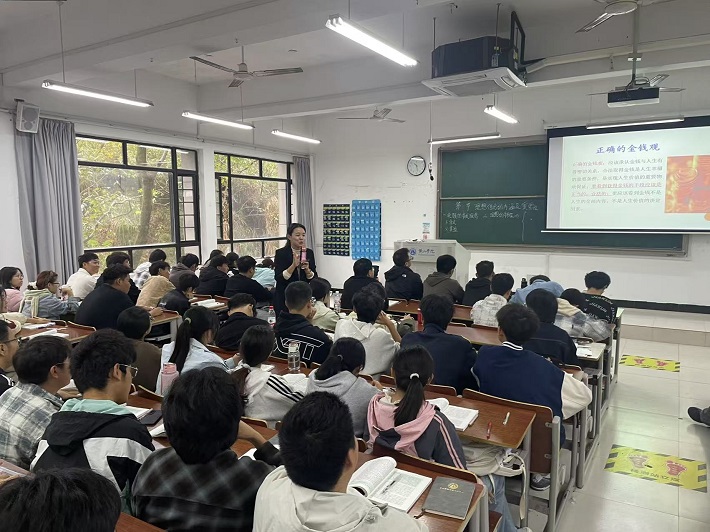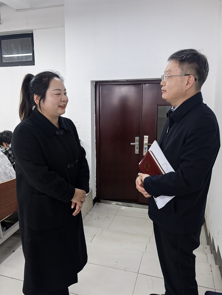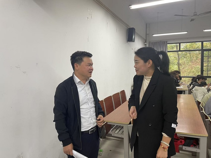调研过程中,校领导走进思政课堂,全程听取了吴丹、孙玉雯两位教师讲授的《思想道德与法治》课程。课后,校领导与授课教师亲切交流,充分肯定的同时,就课程重难点的讲解逻辑、案例选取的时代性,以及思政元素与知识点的融合深度问题提出指导建议。