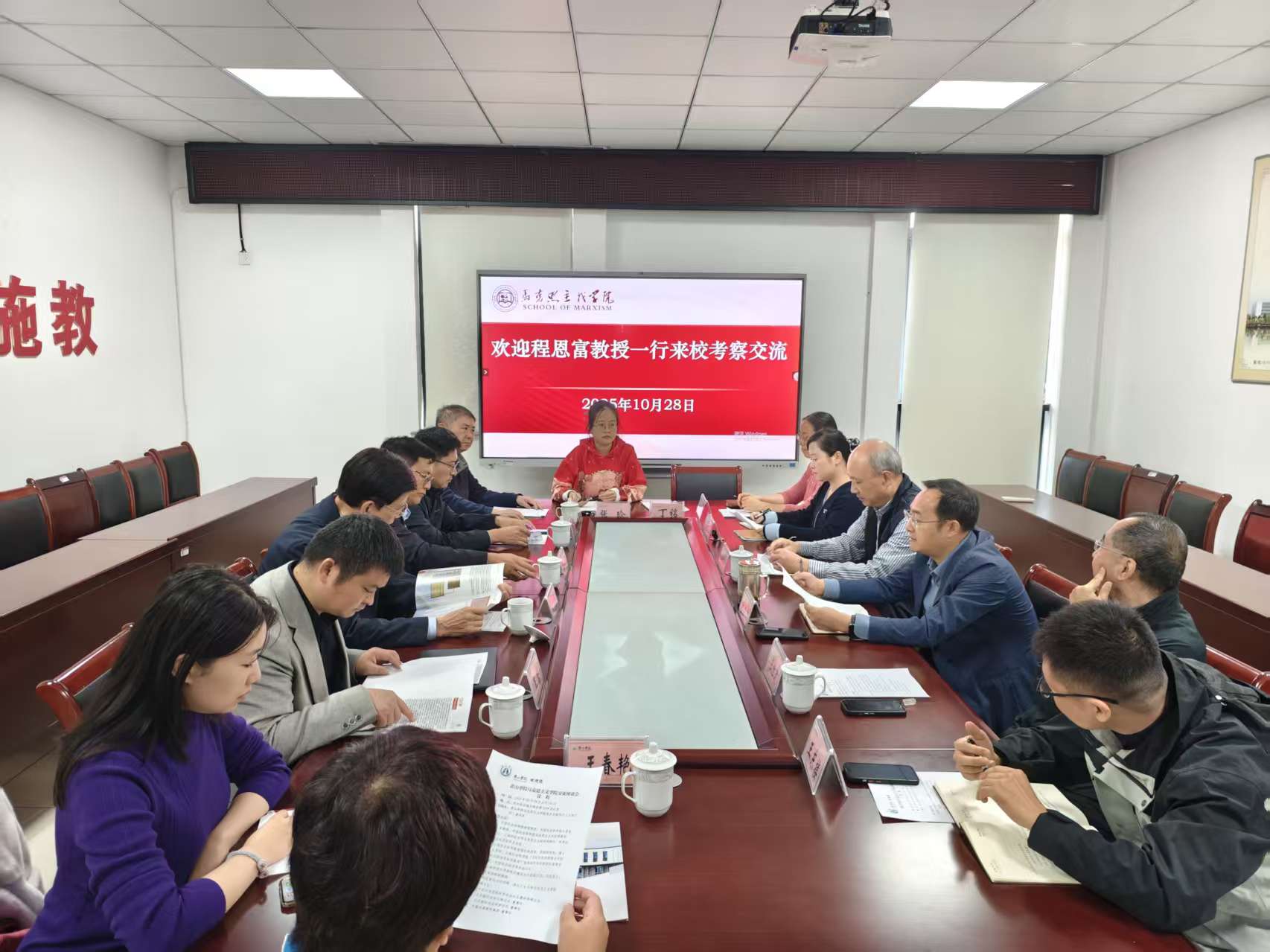 10月28日上午,中国社会科学院学部委员程恩富教授来bat365正版唯一官网开展交流座谈。上海社会科学院经济研究所研究员、博士生导师李正图,上海财经大学新校区建设办公室副主任、马克思主义研究副教授王岩,科技普及公司经理、西北工业大学bat365正版唯一官网博士生郭金刚,中共中央党校科学社会主义教研部博士生汪赛,北京新环安信工程公司董事长汪胜明,北京新环安信科贸公司董事长王春艳等专家陪同调研。会议由bat365正版唯一官网党总支副书记(主持工作)廖荣军主持。bat365正版唯一官网教研室主任及教师代表参加座谈。