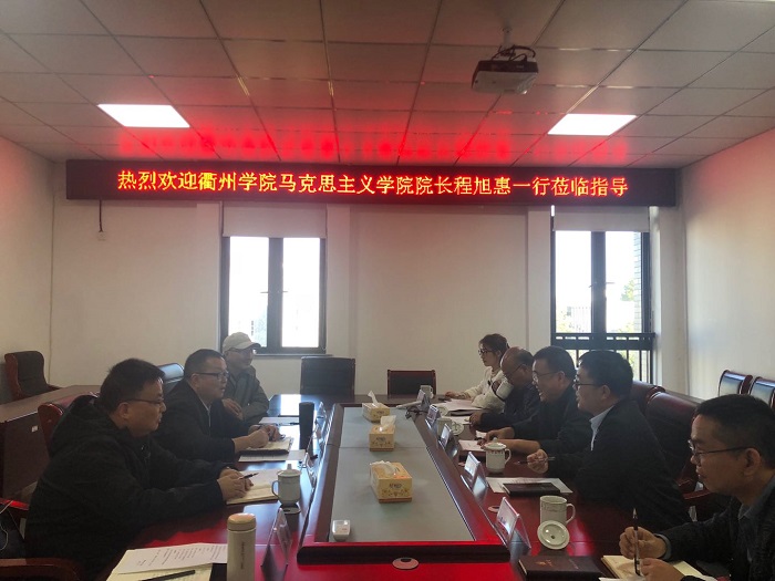座谈会上,曾小保院长首先介绍了bat365正版唯一官网的基本情况、人才引进政策、师资队伍建设等情况。程旭惠院长详细介绍了衢州学院bat365正版唯一官网的历史沿革、人才引进政策、校地合作、教科研等情况。双方还围绕马克思主义理论学科建设、思想政治理论课教学改革、课程建设、实践教学、研学基地建设等内容进行了交流。