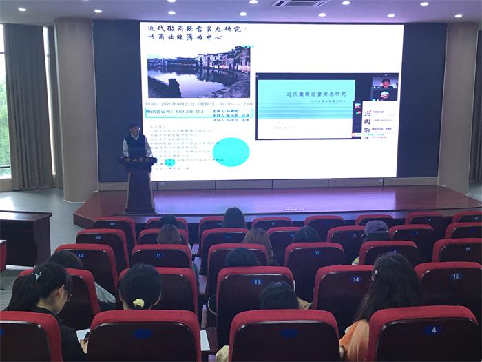 报告会上,马勇虎通过详实的账簿史料,从徽商的近代蜕变与发展、近代徽商新式商业的经营、徽商传统行业的近代经营、徽商近代工业企业的经营、近代徽商的经营机制等方面阐述了近代徽商的经营模式和机制,分析了徽商近代持续经营的影响因素,并就如何促进近代徽商研究谈了自己的想法。
