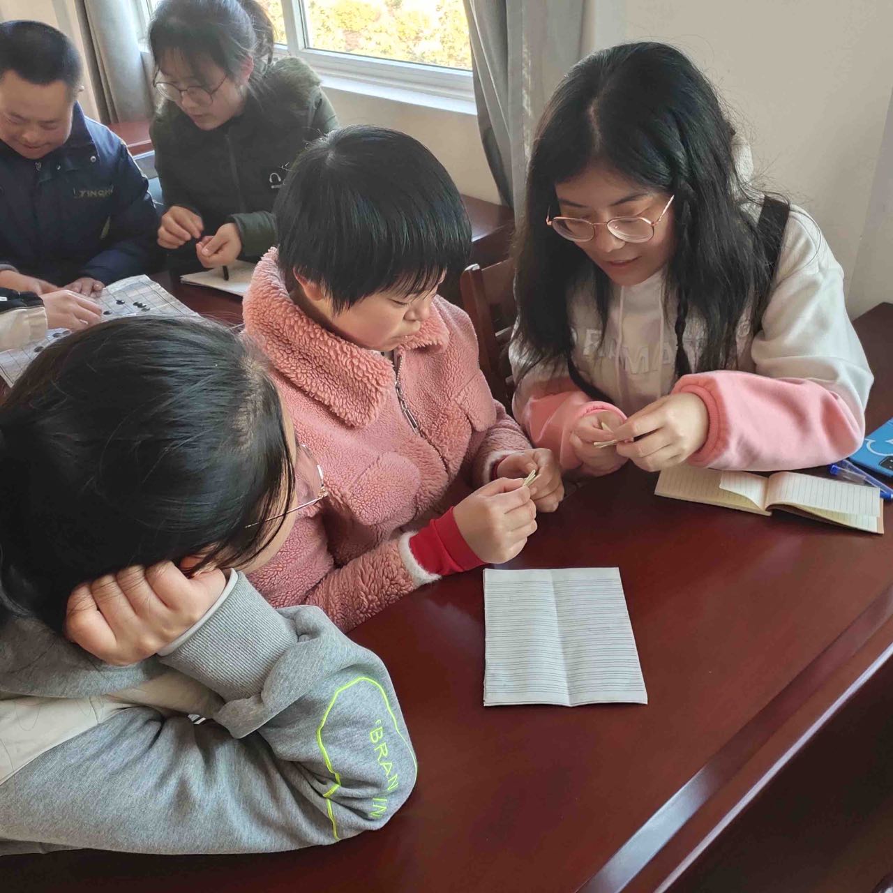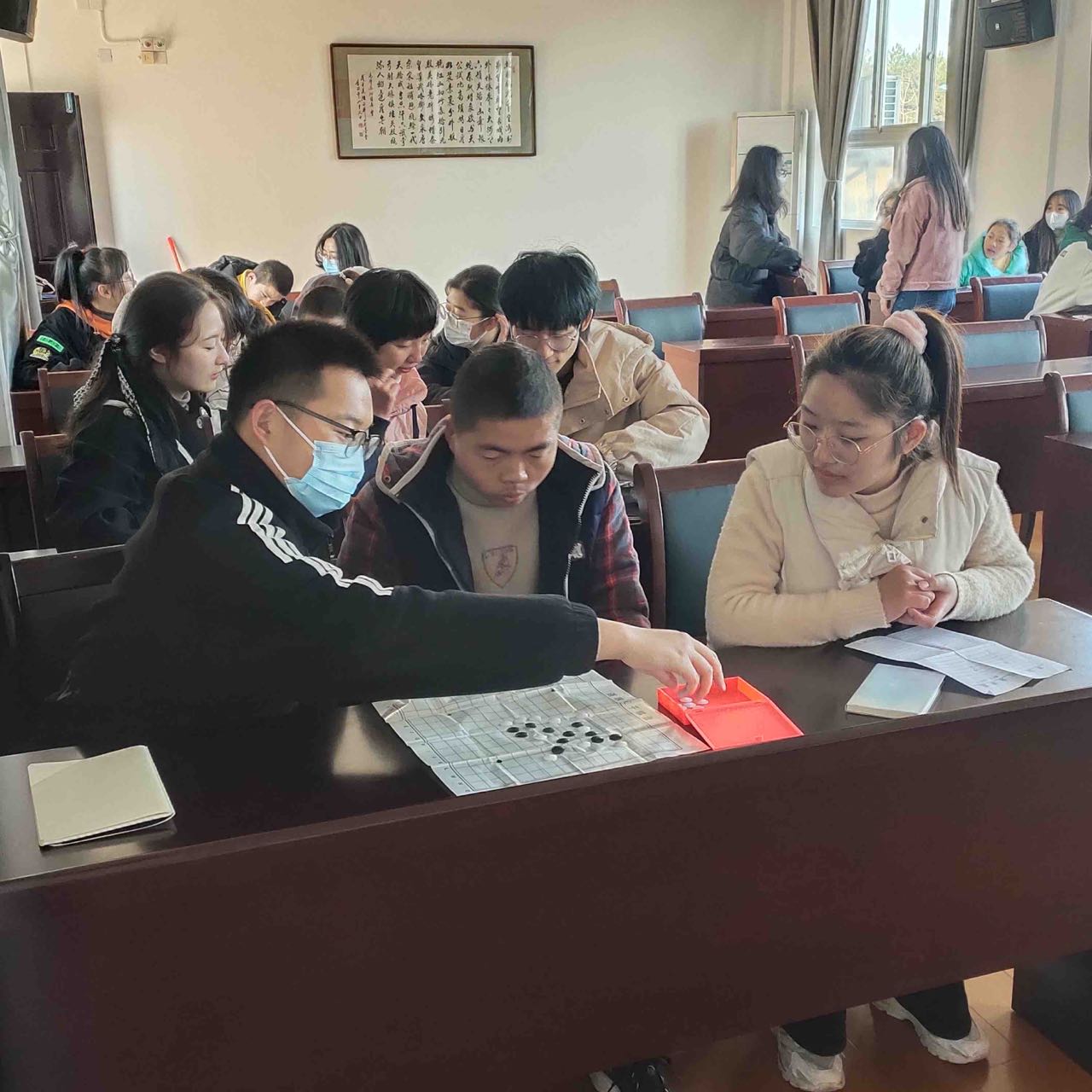 12月4日,bat365正版唯一官网青鸟爱心协会志愿者一行二十余人来到黄山市特殊教育学校,在特校老师的带领下参观了校园。志愿者们的到来受到了孩子们的热烈欢迎,对着志愿者打招呼比手势,主动找志愿者聊天玩耍。彼此熟悉之后,志愿者们带领特校的孩子们在该校会议室分组开展手工折纸、下棋、绘画等交流活动。