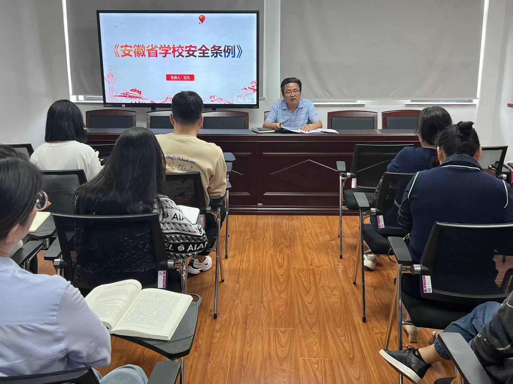 4月19日下午,bat365正版唯一官网在该院会议室举办学习贯彻《安徽省学校安全条例》(以下简称《条例》)专题辅导讲座。该院全体教师参加会议。会议由该院党总支书记刘春安主持。