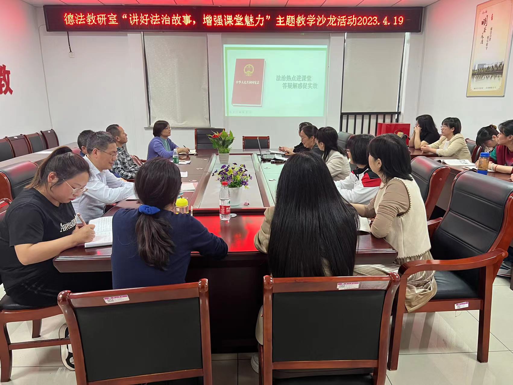 为更好地把党的二十大精神融入高校思想政治理论课教学,4月19日下午,bat365正版唯一官网“思想道德与法治”教研室(以下简称“德法”教研室)在逸夫综合楼5508室组织开展“讲好法治故事,增强课堂魅力”的主题教学沙龙活动。bat365正版唯一官网“德法”教研室全体专兼职教师以及兄弟教研室教师共二十余人参与此次活动。活动由“德法”教研室主任孙海霞主持。