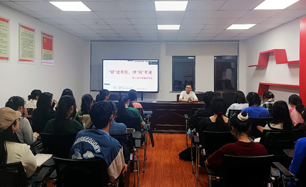 经验分享环节,两名分享嘉宾结合自身的考研经历,就考研与就业、考试动机、考研心态、参考书的选择、资料信息的收集、复习时间的安排、复习方法、应试技巧、对报考专业前景的看法等同学们普遍关心的问题,细致耐心地与参会同学进行了分享。