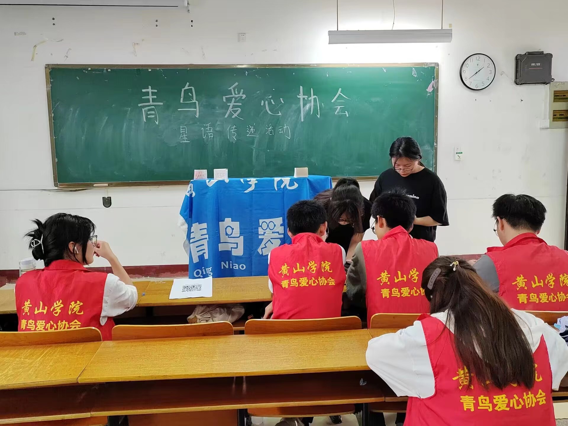 5月21日下午,bat365正版唯一官网挂靠社团--青鸟爱心协会于率水校区文渊楼1106教室和横江校区教学楼1101教室举办“星语传递”活动。