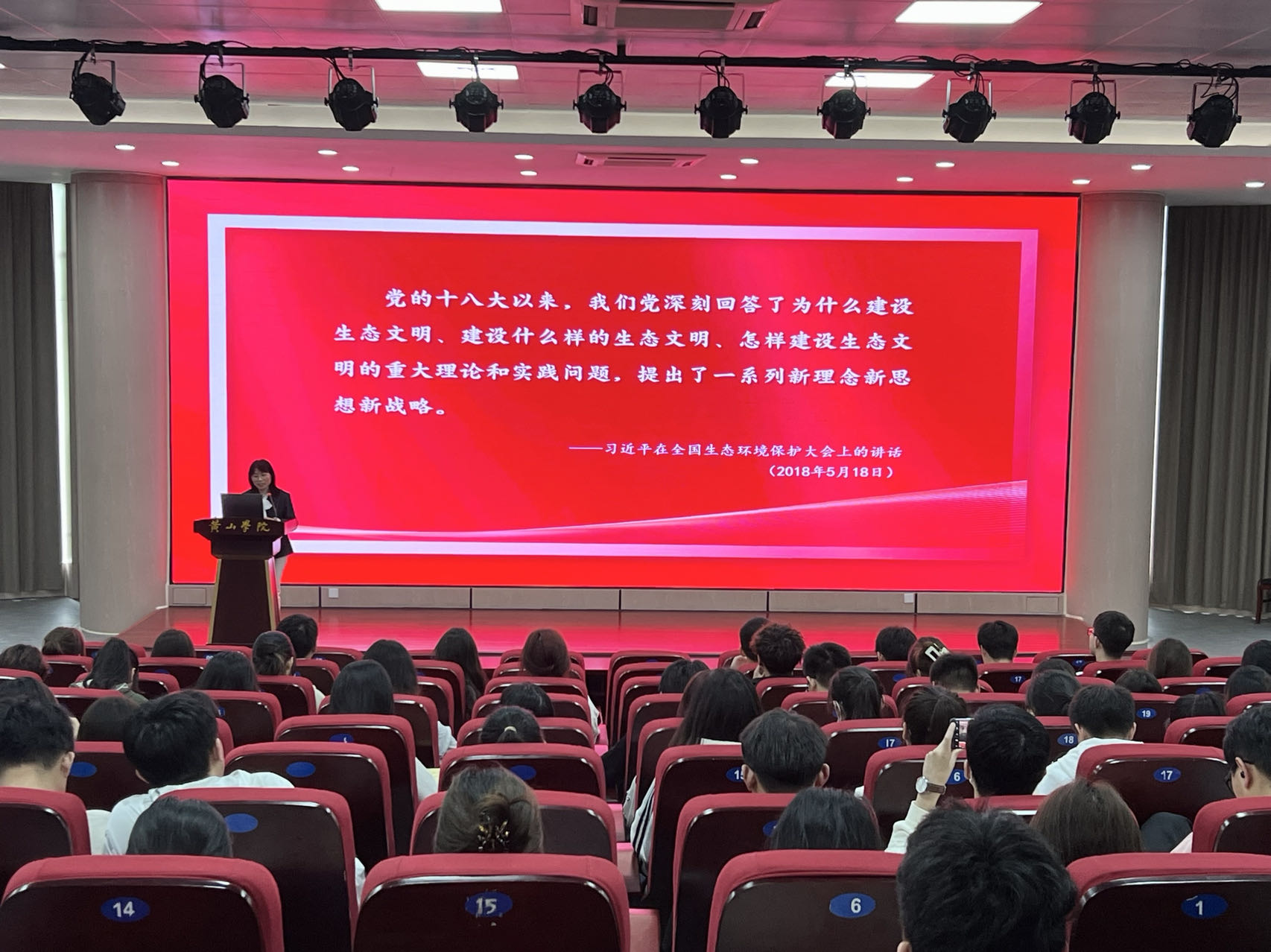 报告以习近平生态文明思想为根本遵循,从为什么建设生态文明,建设什么样的生态文明以及怎样建设美丽黄山展开论述,指出生态文明建设是顺应人类文明进程,破解我国经济社会发展短板问题,满足人民日益增长的优美生态环境需求,应对全球生态环境领域挑战的迫切需要,必须理解和践行“绿水青山就是金山银山”的发展理念,实现经济建设与生态保护的统筹协调。报告还从黄山实际情况出发,认为应着力从打赢污染防治攻坚战,深入实施大气、水、土壤污染防治三大行动计划入手,加快推进美丽黄山建设。
