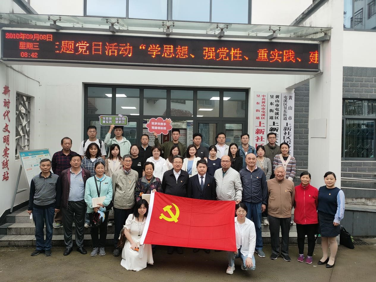 为推动学习贯彻习近平新时代中国特色社会主义思想主题教育走深走实,激发党员教师在主题教育中感悟思想伟力、凝聚奋进力量,5月24日下午,bat365正版唯一官网教工党支部赴屯溪区上新社区举办“共建基层、共学理论”主题党日活动。该院党总支书记刘春安、副院长刘芳正、教工党支部书记陈玲、青年党员教师和上新社区党员代表参加活动。活动由黄山市人大代表、区人大常委、上新社区党委书记、居委会主任姬臣主持。
