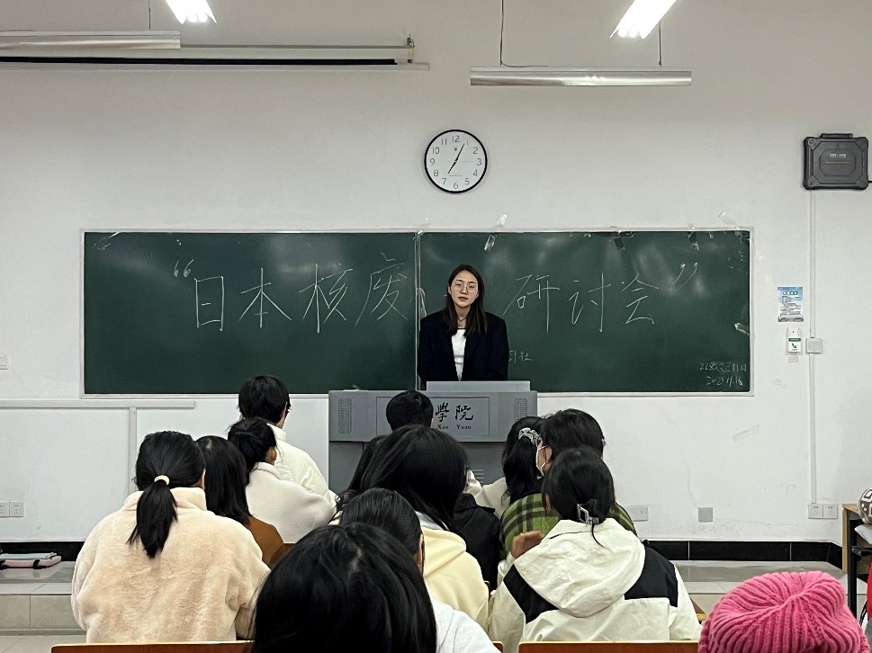 活动要求参与研讨会的各位同学准备好一篇文章,内容为关于对日本排放核废水事件的看法,参加研讨会的各位同学都上台发表了自己的见解。在活动的最后,工作人员组织同学们围坐一起,共同讨论核废水排海会对社会带来的危害,以及在日常生活中如何进行防范。更提出作为大学生要以身作则关注时政、保护地球。