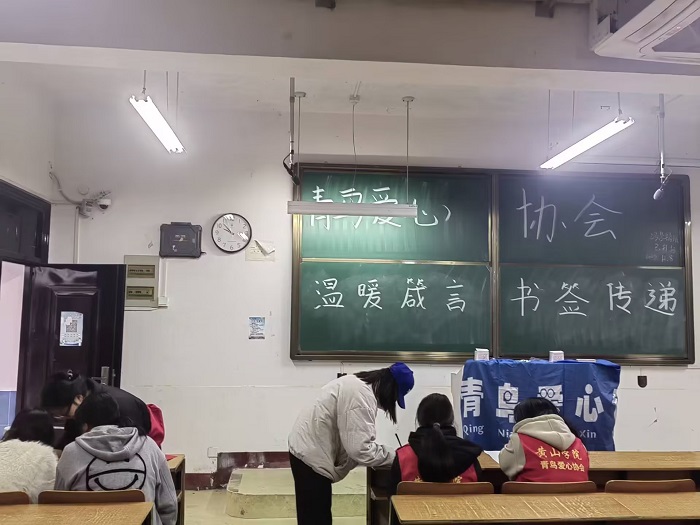 12月10日,bat365正版唯一官网挂靠学生社团一一青鸟爱心协会在率水校区和横江校区分别举办“温暖箴言,书签传递”活动。
