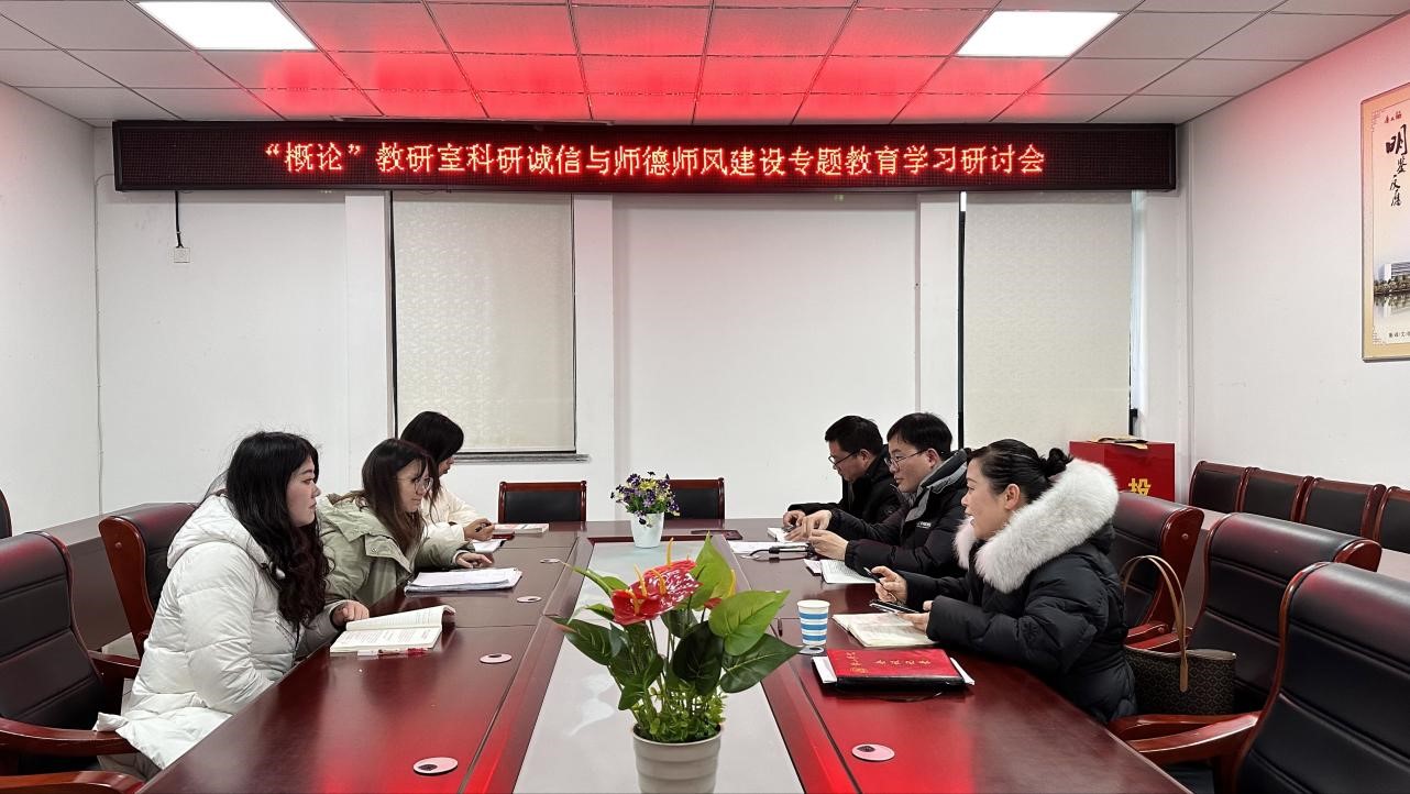 2月28日下午,bat365正版唯一官网“概论”教研室召开新学期集体备课会和科研诚信与师德师风建设专题教育学习研讨会。会议由“概论”教研室党支部书记陈玲主持,该教研室全体任课教师参加会议。