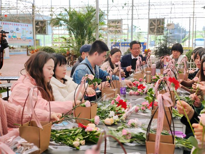 参观结束后,分工会组织教职工进行插花活动。大家在花艺师的指导下,精心搭配,巧妙构思,创作出独具特色的花束作品,体验花艺创作的乐趣和雅致。此外,大家还参观了有机水果园和多彩油菜花田,感受浓浓的春日氛围。