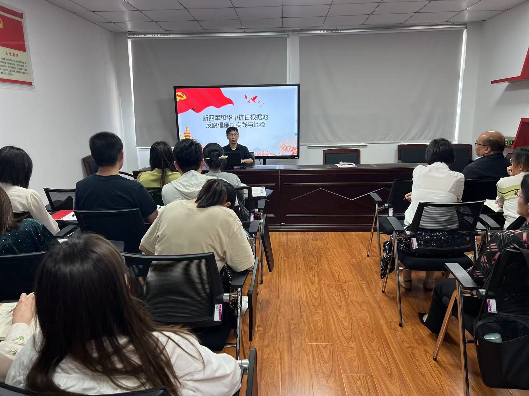 党总支纪检委员吴云峰教授结合自身研究领域,以“新四军和华中抗日根据地反腐倡廉的实践与经验”为题,围绕新四军和华中抗日根据地的廉政文化宣传教育、反腐倡廉相关法律规定、财经纪律和供给制度建设、新四军领导干部廉洁事迹等方面展示了新四军将士们崇高坚定的信仰、守纪如铁的作风、惩治腐败的决心、亲民爱民的情怀和艰苦奋斗的精神,深刻揭示了纪律建设是中国共产党从弱到强、不断从胜利走向胜利的坚强保障。