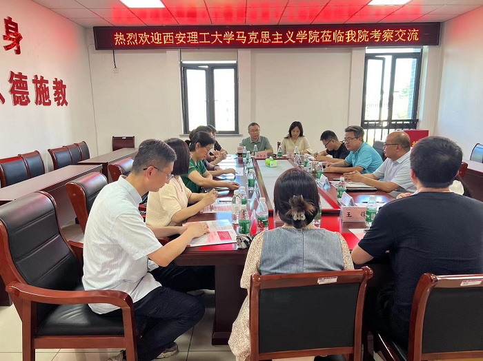 7月4日,西安理工大学bat365正版唯一官网副院长蒙冰峰一行10人来bat365考察交流。bat365党总支书记刘春安、副院长刘芳正、习近平新时代中国特色社会主义思想概论教研室主任王东楼、工会主席汪靓、教学秘书张玲参加座谈会。