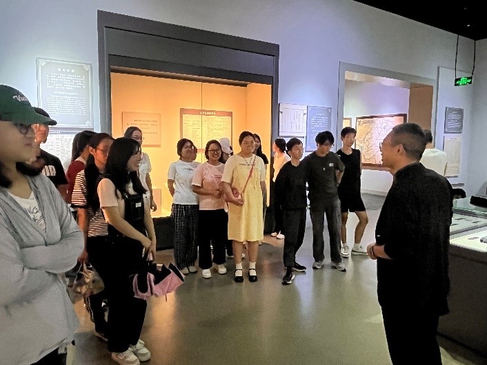 本次活动包括参观、授课和讨论三个环节。活动伊始,讲解员带领师生沉浸式感受了博物馆丰富的陈列展品及其背后的文化故事。在博物馆基本陈列展示区域,师生通过不同专题板块的陈列展学习、感受到了徽州优秀的人文历史和精神价值。在徽州教育陈列展区,学生们了解到明中叶以后徽州新安医学和科技的大发展;在徽州艺术陈列展区,学生们被徽派版画、篆刻艺术等徽州艺术所震撼;在徽州建筑陈列展区,学生们沉浸于反映徽州山地特征、地域美饰倾向的徽州建筑,惊叹于徽州村落布局和徽派民居的地域之美;在天下徽商陈列展区,学生们被徽商敢为天下先、吃苦耐劳、开拓创新的精神所感染;在走进徽州陈列展区,学生们了解了徽州“一府六县”的形成以及徽文化发展的基本脉络,获得了对徽州历史发展的总体概念。