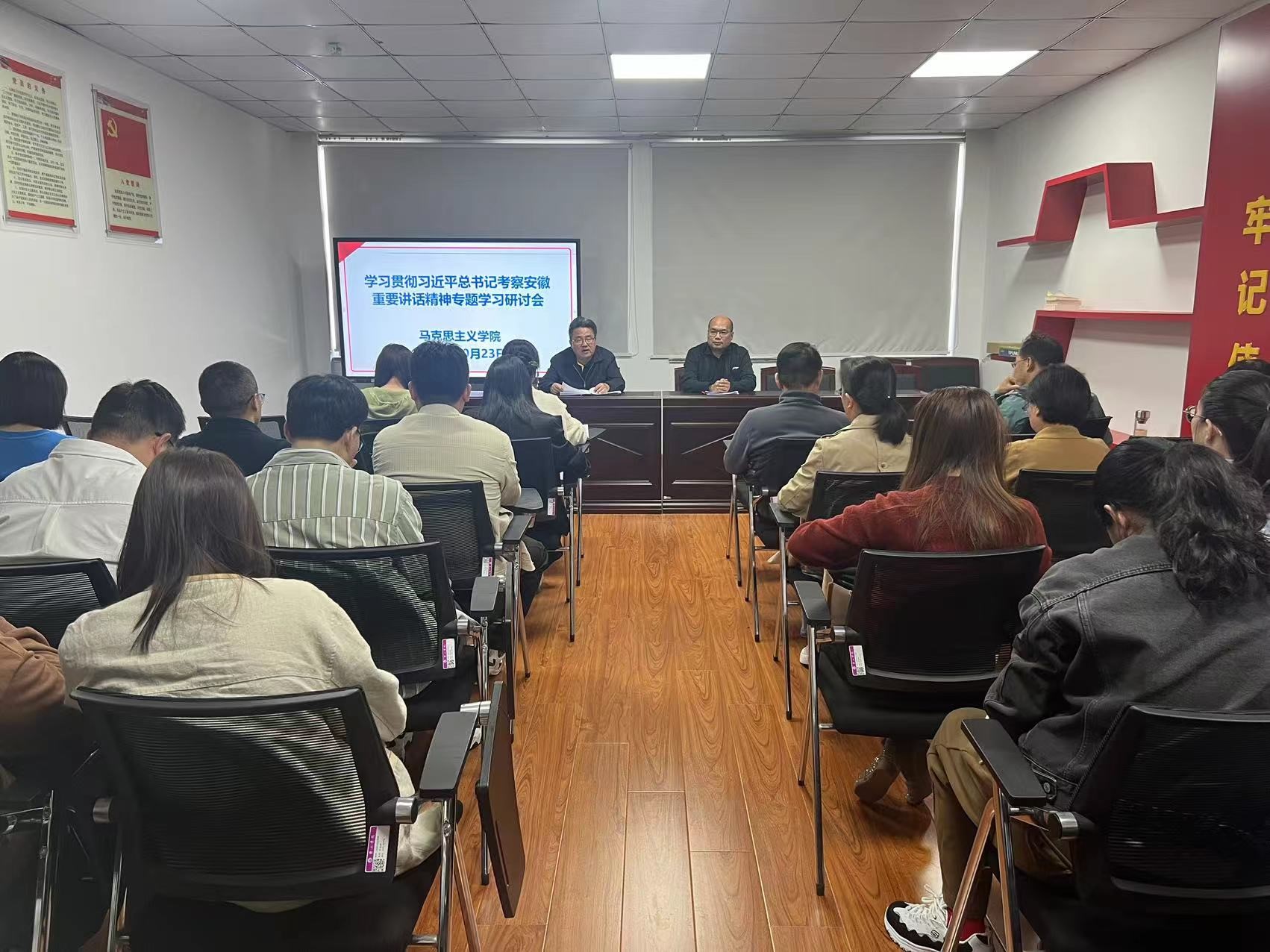 会上,教师们围绕学习贯彻习近平总书记考察安徽重要讲话精神作交流研讨,教师代表杨荣、吴丹、方珊珊、赵永涛、褚超群等作重点发言。