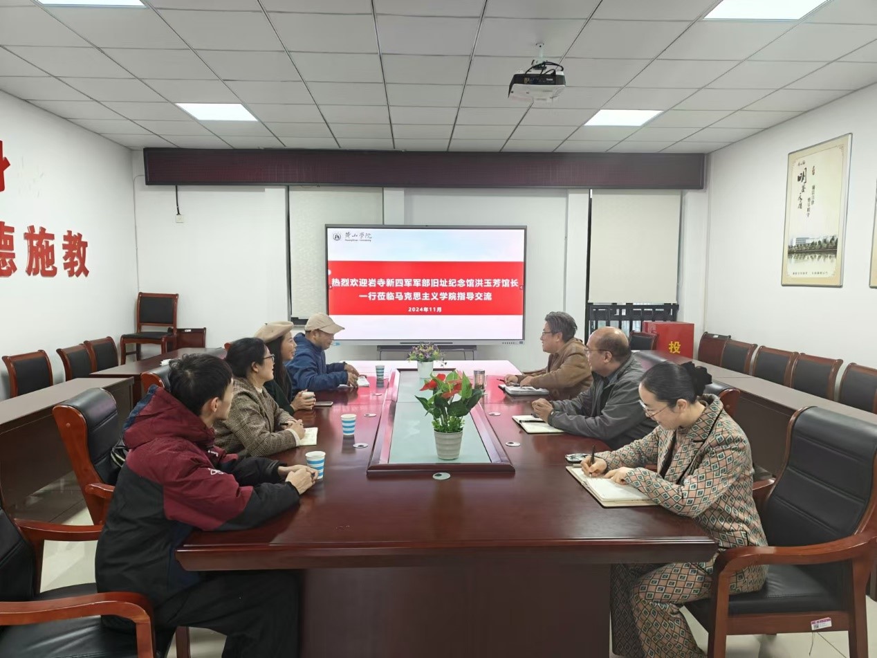 11月25日下午,岩寺新四军军部旧址纪念馆馆长洪玉芳一行到bat365正版唯一官网考察交流。该院党总支书记刘春安、副院长(主持工作)刘芳正参加交流座谈。