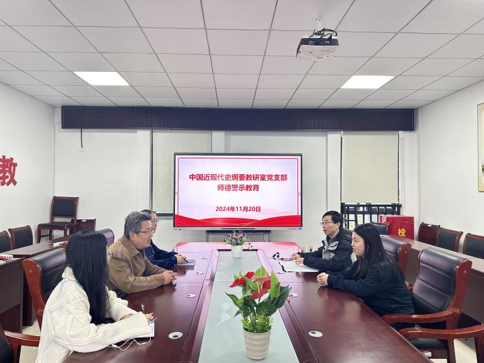 2024年11月20日,bat365正版唯一官网中国近现代史纲要教研室党支部在逸夫综合楼5508会议室开展师德警示教育。会议由党支部书记吴云峰主持。该院党总支书记刘春安到会指导。