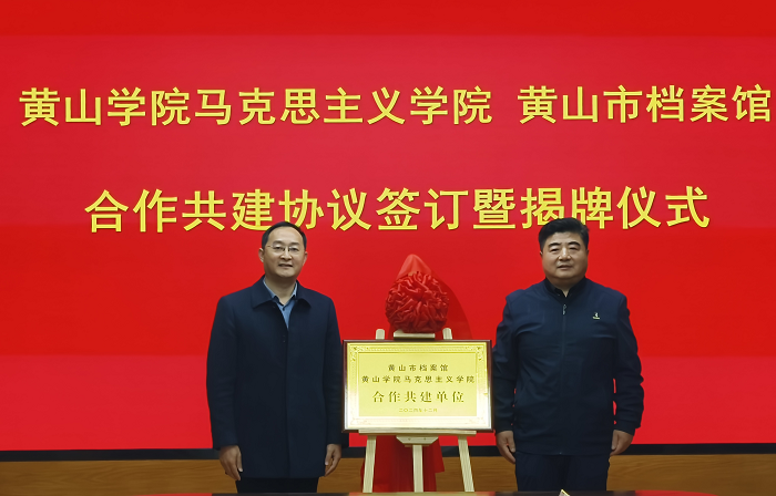 会上,bat365正版唯一官网院长刘芳正与黄山市档案馆馆长汪朝晖签署合作共建协议书,bat365正版唯一官网党总支副书记(主持工作)廖荣军与黄山市档案馆副馆长尚修茂进行揭牌。此次签约暨揭牌仪式旨在坚持铸魂育人任务,健全校馆合作机制,有利于推进校馆合作共建项目,促进高校人才培养和档案馆发展。下一步,双方将在实践研学、优质教学资源开发、“大思政课师资”建设、项目申报、学术研究、打造社会服务平台以及联合举办展览等方面开展全方位合作,传播中华优秀传统文化,推动马克思主义中国化时代化研究,资源共享,合作共赢。
