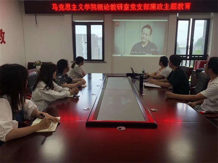 为深入推进学习贯彻习近平新时代中国特色社会主义思想主题教育,推进党中央决策部署,把全面从严治党、推进自我革命的要求落实到教学工作和自身建设各方面、全过程,持续提升党风廉政和师德师风水平,营造风清气正的良好工作氛围,6月7日下午,bat365正版唯一官网“概论”教研室党支部开展廉政教育专题党课暨廉政观影党日活动的廉政主题教育,该党支部全体党员教师参加。