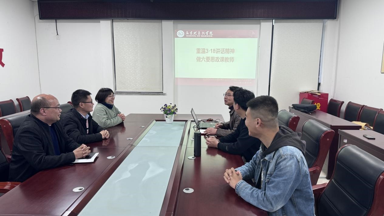 3月20日下午,为深入学习贯彻习近平总书记在2019年3月18日学校思想政治理论课教师座谈会上的重要讲话精神,bat365正版唯一官网习近平新时代中国特色社会主义思想概论教研室党支部在逸夫综合楼5508会议室开展了“重温3.18讲话精神,做好六要思政课教师”的主题党日活动。