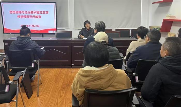 2024年11月27日下午,德法教研室党支部在bat365正版唯一官网党员活动室召开师德师风警示教育大会。该院党总支书记刘春安出席,支部全体党员参加,党支部书记马国香主持会议。