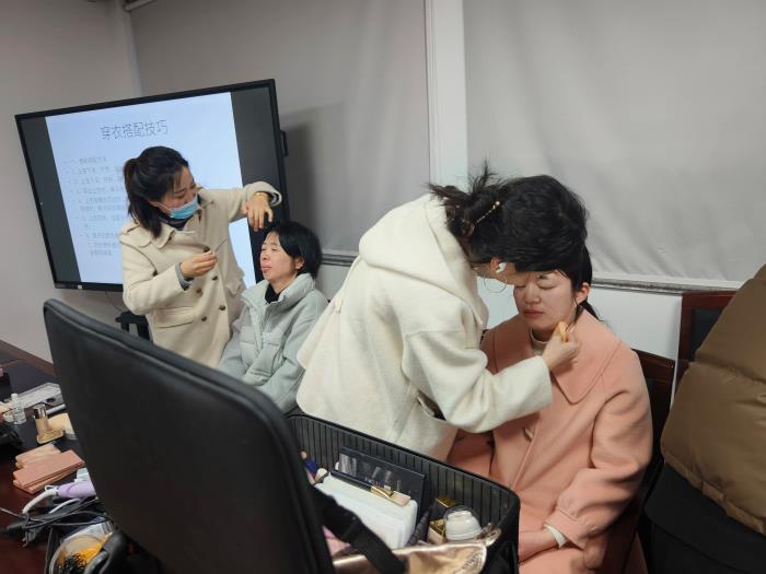 活动现场,专业美妆老师为大家讲授了日常美妆、穿衣搭配等技巧,并对大家关心的问题进行现场答疑。之后,大家在美妆老师的指导下,进行了美妆实操。