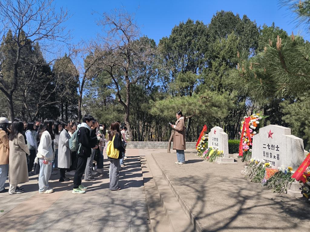 2023年3月30日上午,值清明节来临之际,yabo鸭脖官网党总支在本科生、研究生三个学生党支部开展“缅怀革命先烈,不忘初心使命”主题党日活动,组织学生党员、发展对象和积极分子近50人赴长辛店“二七”纪念馆参观学习,并在“二七”革命烈士陵园举行悼念活动,党总支组织员张春霞带队参加。