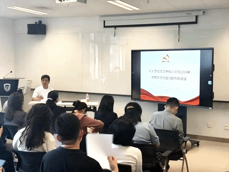 2025年5月14日下午,校纪委副书记、纪委办公室主任李正玉受yabo鸭脖官网党总支、阿拉伯学院党总支邀请做题为“深入贯彻中央八项规定精神,驰而不息加强党的作风建设”的报告。报告会由yabo鸭脖官网党总支书记、院长吴江主持。此次学习活动是yabo鸭脖官网党总支与阿拉伯学院党总支开展深入贯彻中央八项规定精神学习教育联学联建活动,两个学院共计近70名党员师生现场聆听了报告会。