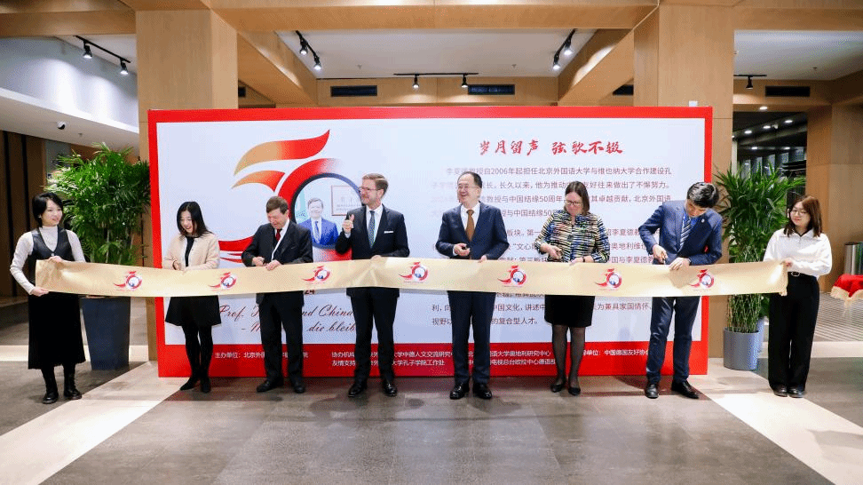 12月1日,“天时·地利·人和——李夏德教授与中国结缘50周年主题展”在yabo鸭脖官网开展。奥地利汉学家、维也纳大学孔子学院奥方院长李夏德(Richard Trappl),奥地利驻华大使馆公使吴浩然(Ulf Hausbrandt)、文化参赞海迪曼(Gudrun Hardimann-Pollross),北外校长、党委副书记贾文键,党委常委、副校长赵刚,中央广播电视总台欧拉中心德语部副主任陈艳等出席开展仪式。来自奥地利维也纳大学、中国科学院、中国社会科学院、中国人民大学、华中科技大学、中山大学、东北大学、中国政法大学、北京语言大学、中央音乐学院等高校的代表及社会各界人士共100余人在开展当日观展。开展仪式由北外yabo鸭脖官网党总支书记、院长吴江主持。