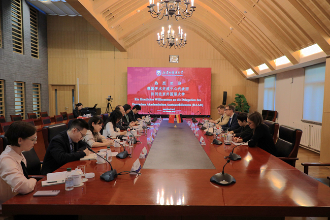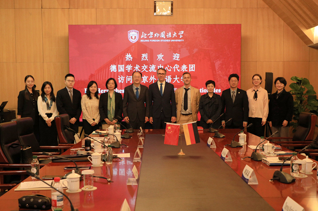 10月14日,德国学术交流中心(DAAD)秘书长凯·西克斯(Kai Sicks)一行访问yabo鸭脖官网,北外校长、党委副书记贾文键会见代表团一行。