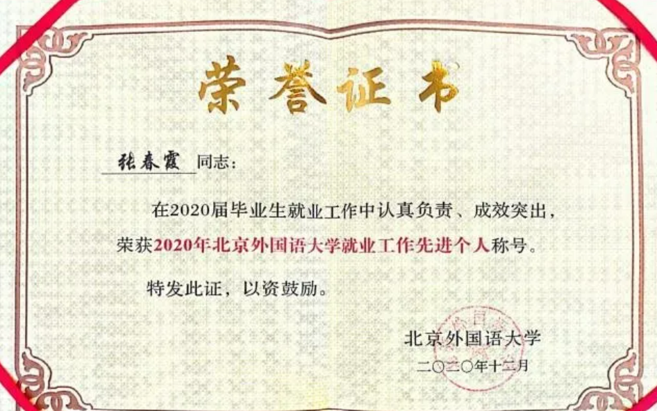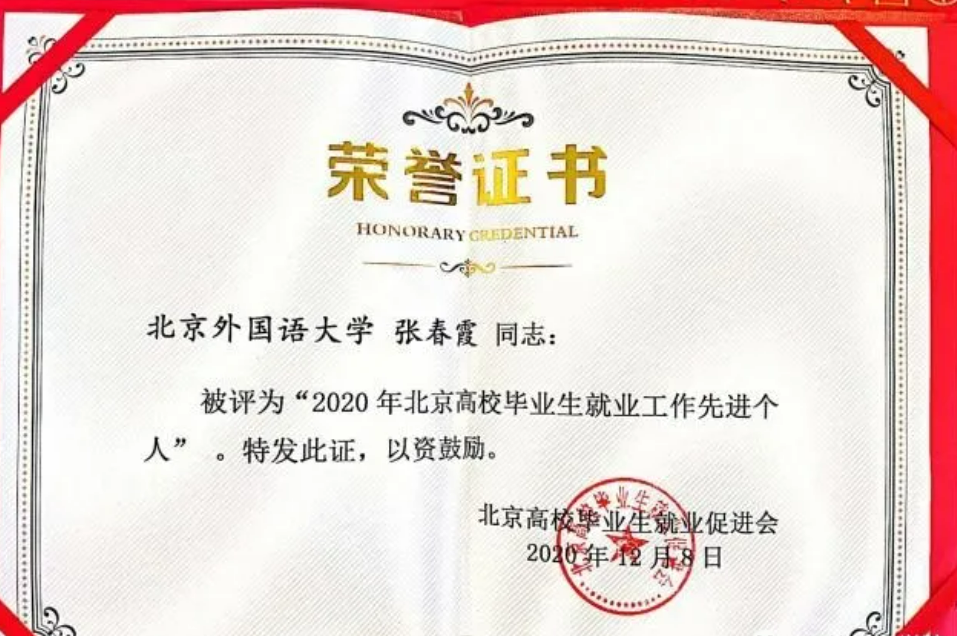 鸭脖官网教师张春霞荣获“2020年北京高校毕业生就业工作先进个人”以及“2020年yabo鸭脖官网就业工作先进个人”等两项荣誉称号。张春霞老师作为获奖代表在总结会上发言。