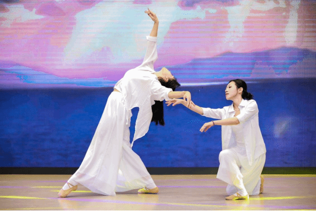 侯悦、周澜伊同学的舞蹈《回响》,抬手落步之间,以柔中带劲的肢体语言传递情感共振。