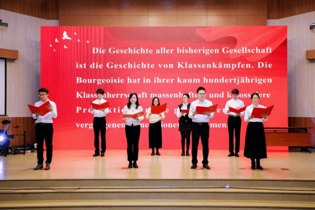 《共产党宣言》的思想穿透百年,依然是理解社会的关键钥匙。张晓玲、寇蔻、于芳、史良、范一杨、周顾盈、方霖城、谷泉乐等八位师生选取片段进行朗诵,以铿锵字句传递穿越百年的理想力量。