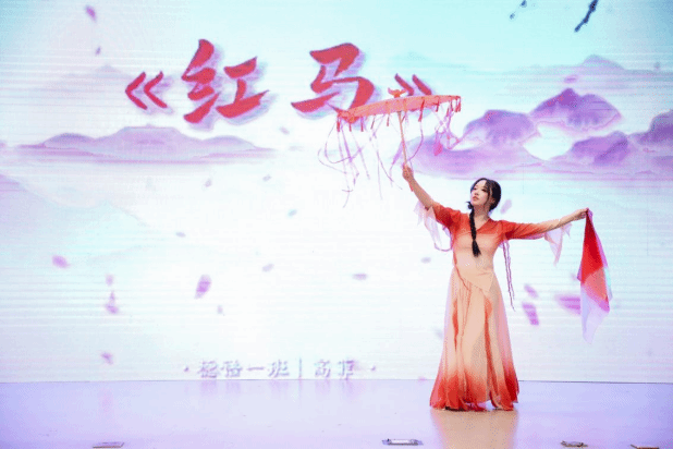 高菲身着一袭红衣带来舞蹈《红马》,以轻盈的步履、翩跹的衣袂、灵动的舞姿,勾勒出江南烟雨朦胧的意境。