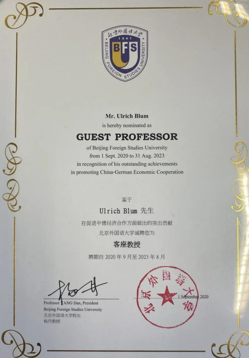 鉴于其在促进中德经济合作方面做出的突出贡献,德国哈勒-维滕贝格大学经济系讲席教授、弗劳恩霍夫协会材料经济学中心创始人卜玉洗(Ulrich Blum)自本学期起被聘为yabo鸭脖官网客座教授,聘期三年。