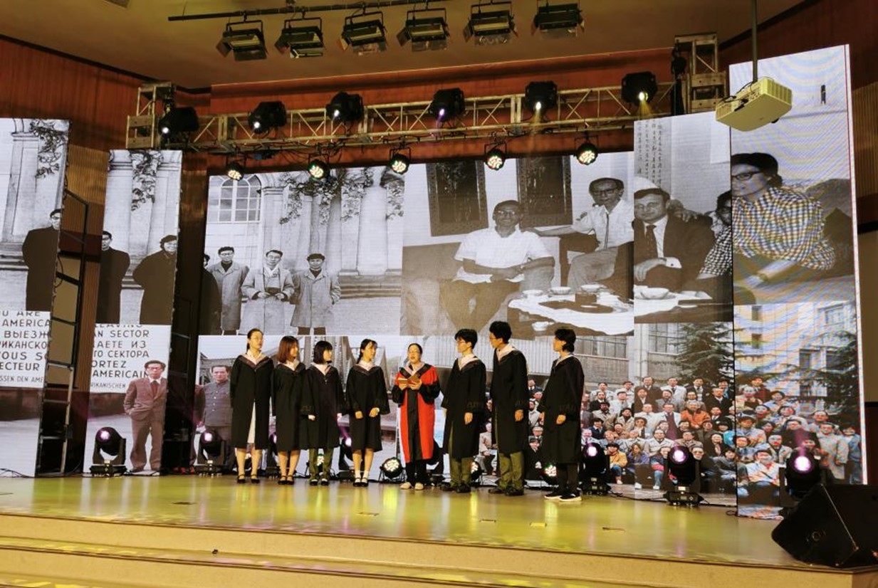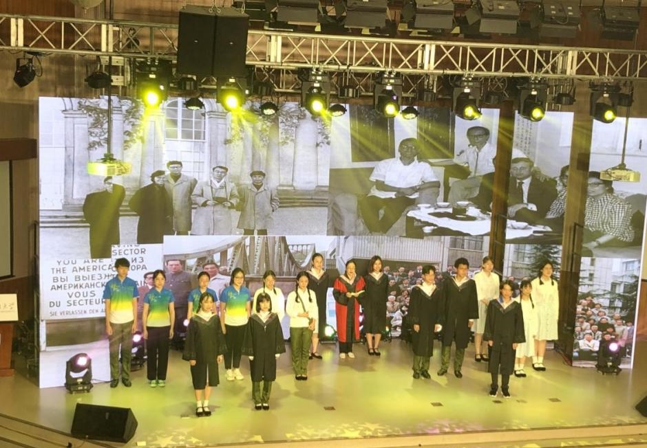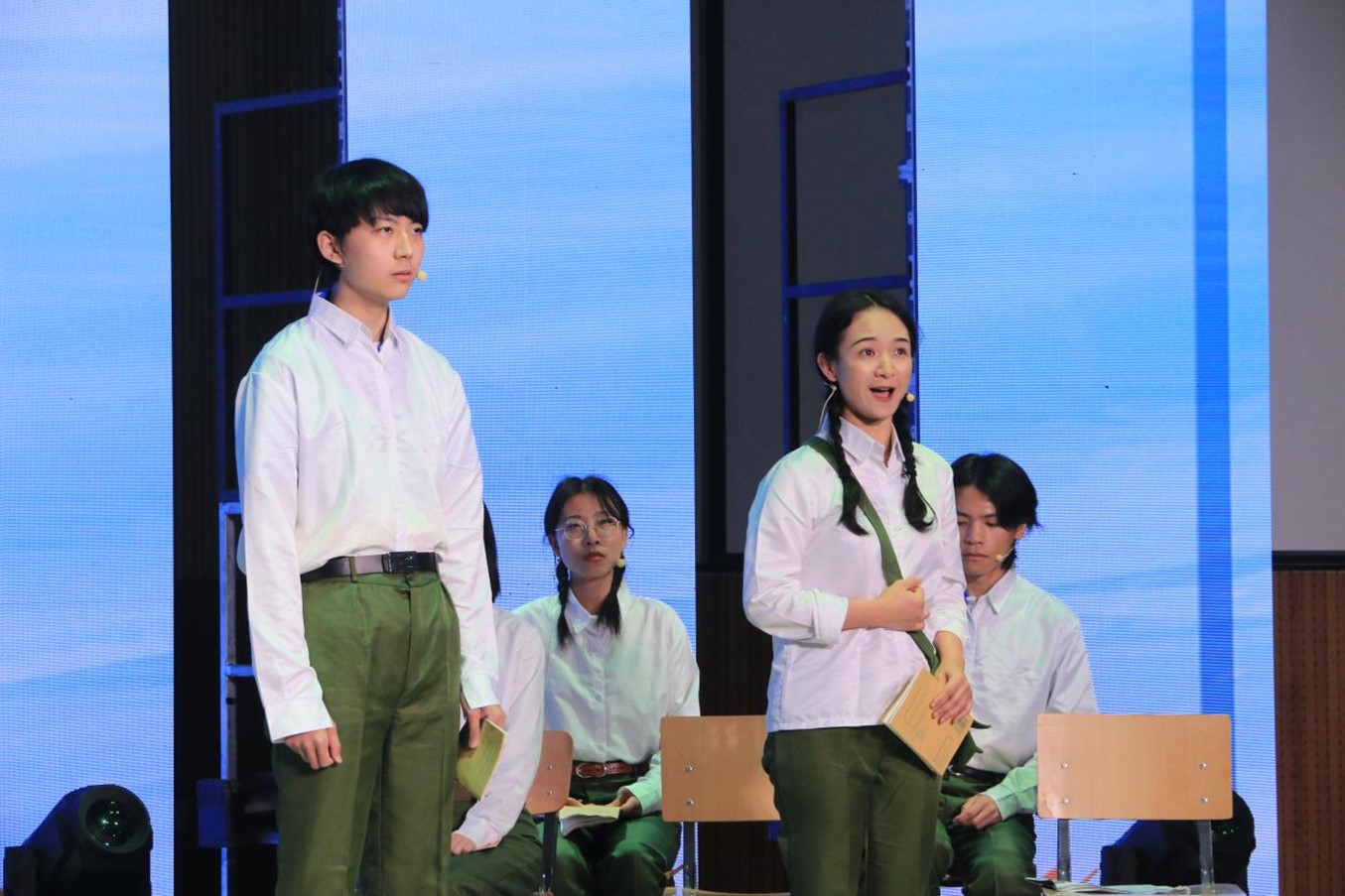 中德双语原创诗歌朗诵剧《我们的青春》,由辅导员张春霞编剧,yabo鸭脖官网教师周海霞带领王清心、徐泽茗、张乃文等20余位本硕学生参演。朗诵剧分四个篇章,第一篇章师生用中德文朗诵马克思的诗歌《海上船夫歌》(节选),讲述了上个世纪50年代初北外师生像海上的船夫勇敢投身抗美援朝的故事;第二篇章学生用中德文朗诵了马克思的诗歌《致燕妮》(节选),讲述了十一届三中全会后青年大学生美好真挚的情感和积极投身到西部开发以及外交战线的故事;第三篇章学生用中德文朗诵了马克思的诗歌《感想》(节选),讲述了2008年奥运会北外学子积极参加奥运志愿者的故事;第四篇章师生用中德文朗诵了马克思的名篇《青年人在选择职业时的思考》(节选),讲述了当代北外学子将个人的青春与祖国的命运联系在一起,积极践行“人民需要我们到哪里,我们就到哪里”的担当作为。
