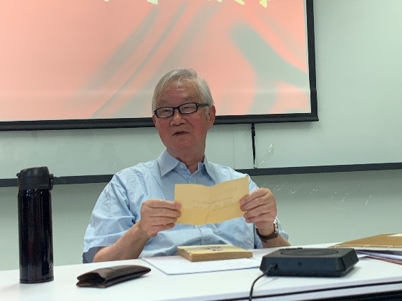 李逵六教授与师生听众分享了《共产党宣言》建国前的7个中文译本和建国后的6个中文译本出版的历史及相关轶事,讲述了自己从北外调去中央党校担任成仿吾秘书承接翻译任务的经过,并展示了《共产党宣言》的原稿照片、《共产党宣言》中译本等珍贵的实物资料。