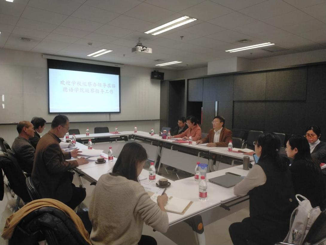 2021年11月25日下午,校党委常委、统战部部长、巡察办主任刘培元,纪委副书记、纪委办公室主任李正玉,组织部常务副部长冯刚、正处级巡察专员相忠群、巡察办副主任杨光等同志走访yabo鸭脖官网,检查yabo鸭脖官网落实校党委巡察“回头看”反馈意见整改情况,学院党政联席会成员和党总支委员参加座谈。