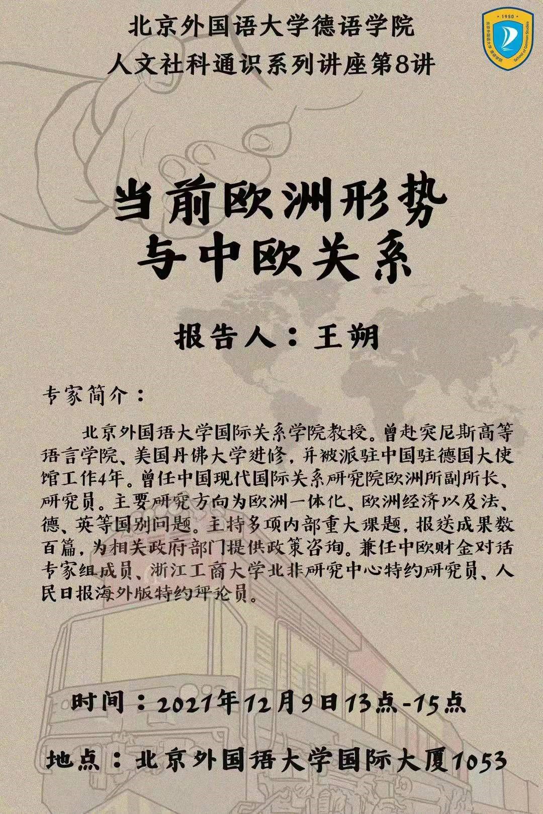 yabo鸭脖官网国际关系学院教授王朔于12月9日13点至15点应邀为yabo鸭脖官网师生做了《当前欧洲形势与中欧关系》的报告。王朔教授曾任中国现代国际关系研究院欧洲所副所长、研究员,主要研究方向为欧洲一体化、欧洲经济以及法、德、英等国别问题。