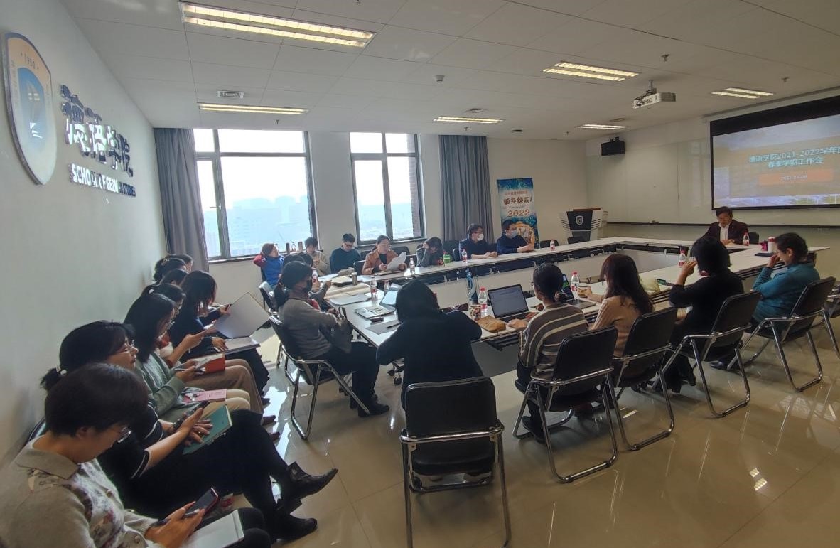 3月9日下午13:00,yabo鸭脖官网在国际大厦1053会议室召开了“守正创新 同心同德”新学期工作部署会。学院全体教师参会,会议由党总支书记常秀鹏主持。