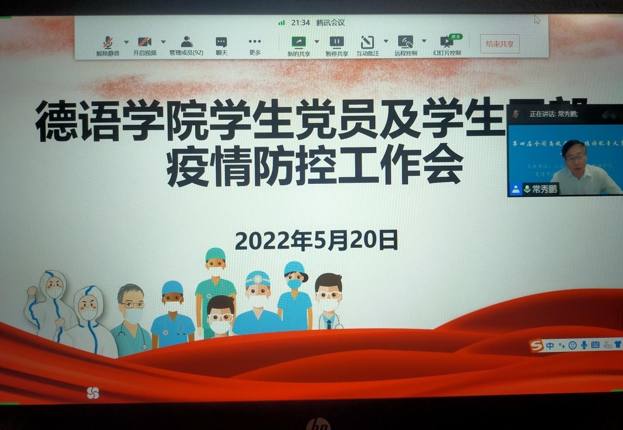 辅导员张春霞、张婧、粟靖淳分别介绍了当前的北京市、海淀区的疫情形势及校园封闭管理的重要性和必要性,指出近期学校、学院疫情防控工作中出现的问题。