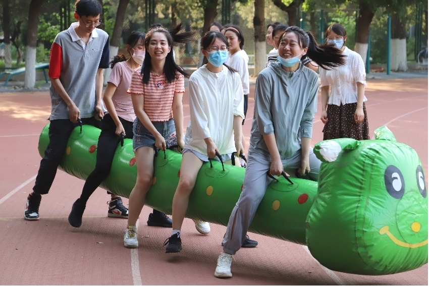 5月28日下午4时,报名参赛的四支队伍准时在操场集结,yabo鸭脖官网辅导员张春霞、粟靖淳也加入队伍和大家一同比赛。虽然户外骄阳高照,热浪习习,但同学们依旧热情高涨、生龙活虎。本次心理运动会与众不同之处在于其趣味性:参赛同学无需体育特长,只需尽情享受在比赛中与队友团结协作的快乐!