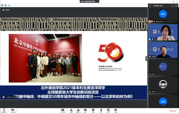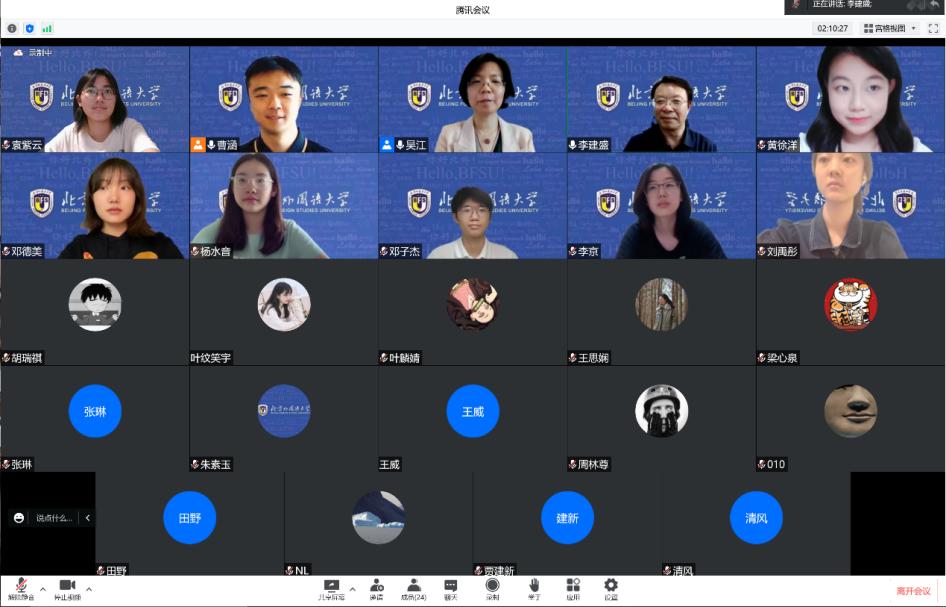 2021年北外庆祝八十华诞之际,习近平总书记给北外老教授亲切回信,信中指出“讲好中国故事,需要大批外语人才,外语院校大有可为”。yabo鸭脖官网两项国家级“大学生创新训练项目”——《中轴线的智慧》与《跨越中轴线》正是德院学子近年来践行用外语讲好中国故事的生动案例。报告会开场,吴江代表学院对李建盛给与项目建设提供学术指导表示诚挚的感谢。