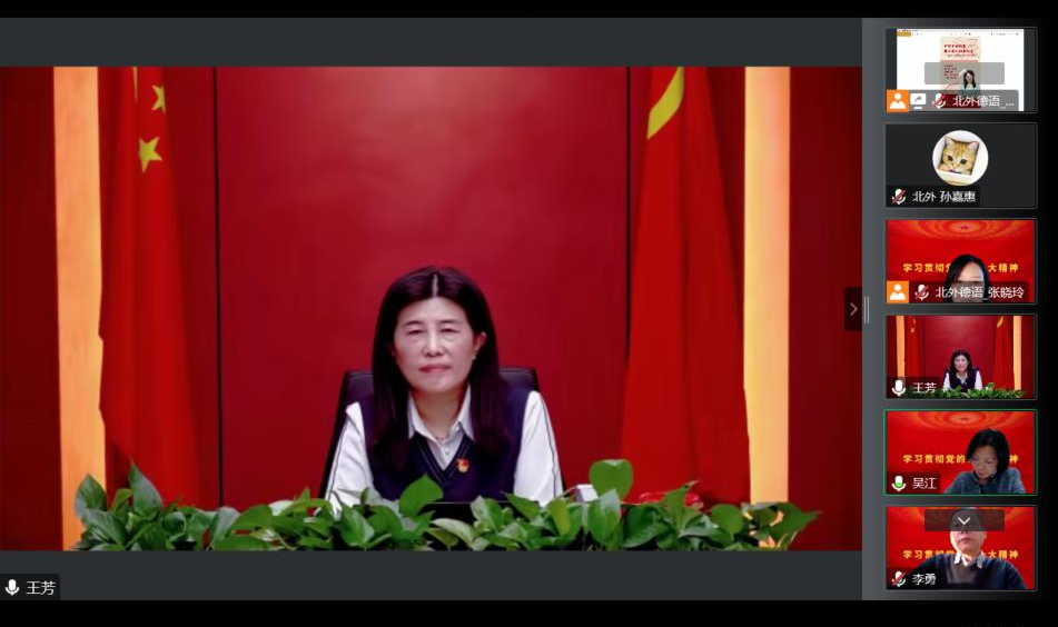 参会党员师生积极与王芳社长交流互动,踊跃分享学习心得。yabo鸭脖官网青年教师孙嘉惠、陆娇娇、顾苏及大四本科生曹涵先后提问。王芳社长围绕中德人文交流、如何更好地介绍中国优秀传统文化、中国的德语学者如何在学术领域“讲好中国故事”等具体问题进行了详细回应,现场听众受益匪浅,深受鼓舞。