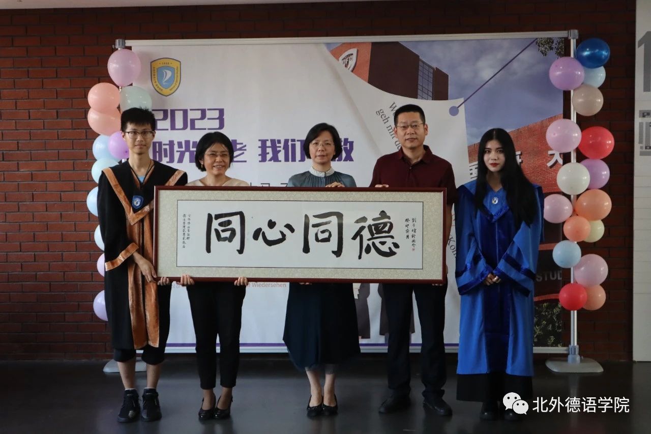 最后党总支书记、院长吴江做春季学期工作的总结汇报。对照学期初工作重点汇报了yabo鸭脖官网本学期在学习贯彻二十大精神、师德师风建设、课程思政、本科教学、教材编写、科研、招生、就业等方面的工作进展,同时汇报了以“洛克与中国”主题展、奥地利文化巡礼、第五届全国高校本科生德语配音大赛、“音乐之声”初夏晚会以及北外德语国家讲堂系列学术报告等为主体活动的yabo鸭脖官网“春之声”文化节——“邂逅奥地利”的举办情况,对积极参与和筹办各项活动的师生表示诚挚的谢意。临近期末,师生团结一心,成功接待德国社民党联合主席克林贝尔一行,为中德人文交流尽了绵薄之力。总结会的最后,吴江代表学院感谢校友给与学院各项工作的鼎力支持,对本学期在教学、科研、管理各领域获得奖励的师生表示由衷的祝贺,并给各位老师展示了2023届毕业生向学院赠送的“同心同德”的书法作品,希望师生“同心同德”,守正创新,踔厉奋发,共同推动学院各项工作高质量发展。