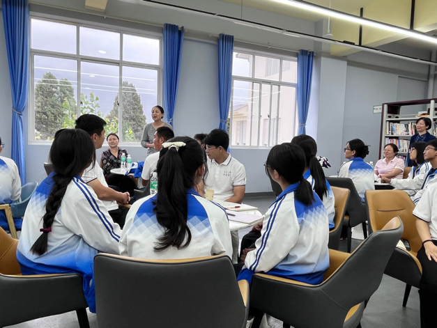 最后,实践研习团来到鹤庆三中,与即将参加高考的学子进行座谈交流。教师党员们向高中生们介绍了北外及yabo鸭脖官网的基本情况,同时以生动活泼的形式与师生就德国文化进行了互动交流,并在分组讨论环节就大学生活、英语学习、外语教学等主题展开了对话,现场气氛十分热烈。