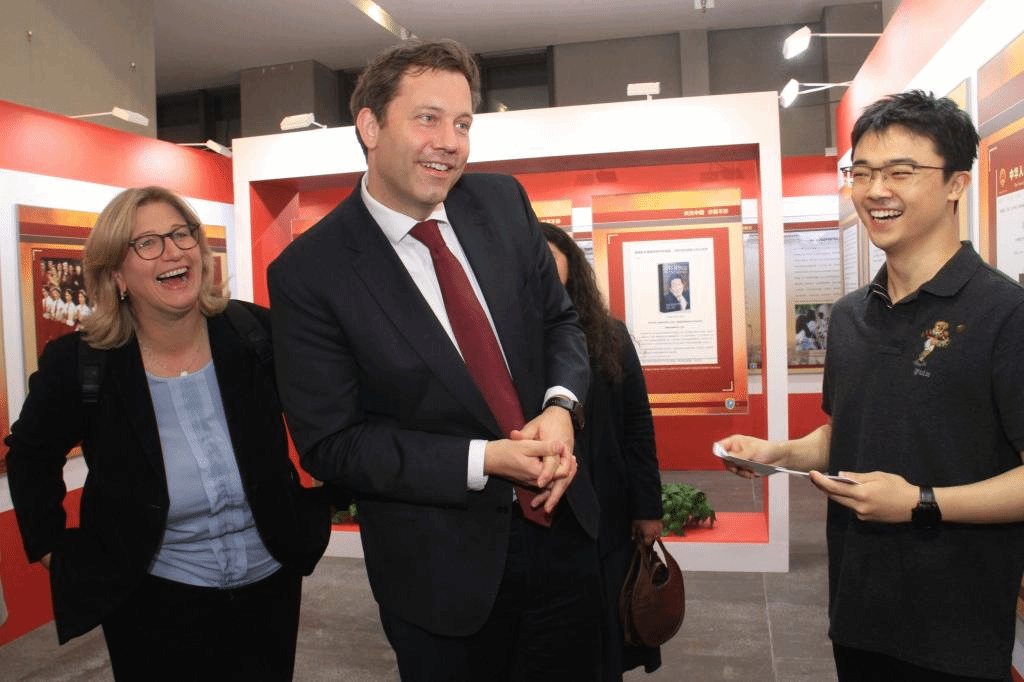 yabo鸭脖官网2019级本科生曹涵和2022级本科生黄婉茹为克林贝尔一行担任志愿讲解员。两位学生精彩的讲解以及热情洋溢的精神面貌赢得了德方嘉宾的称赞。